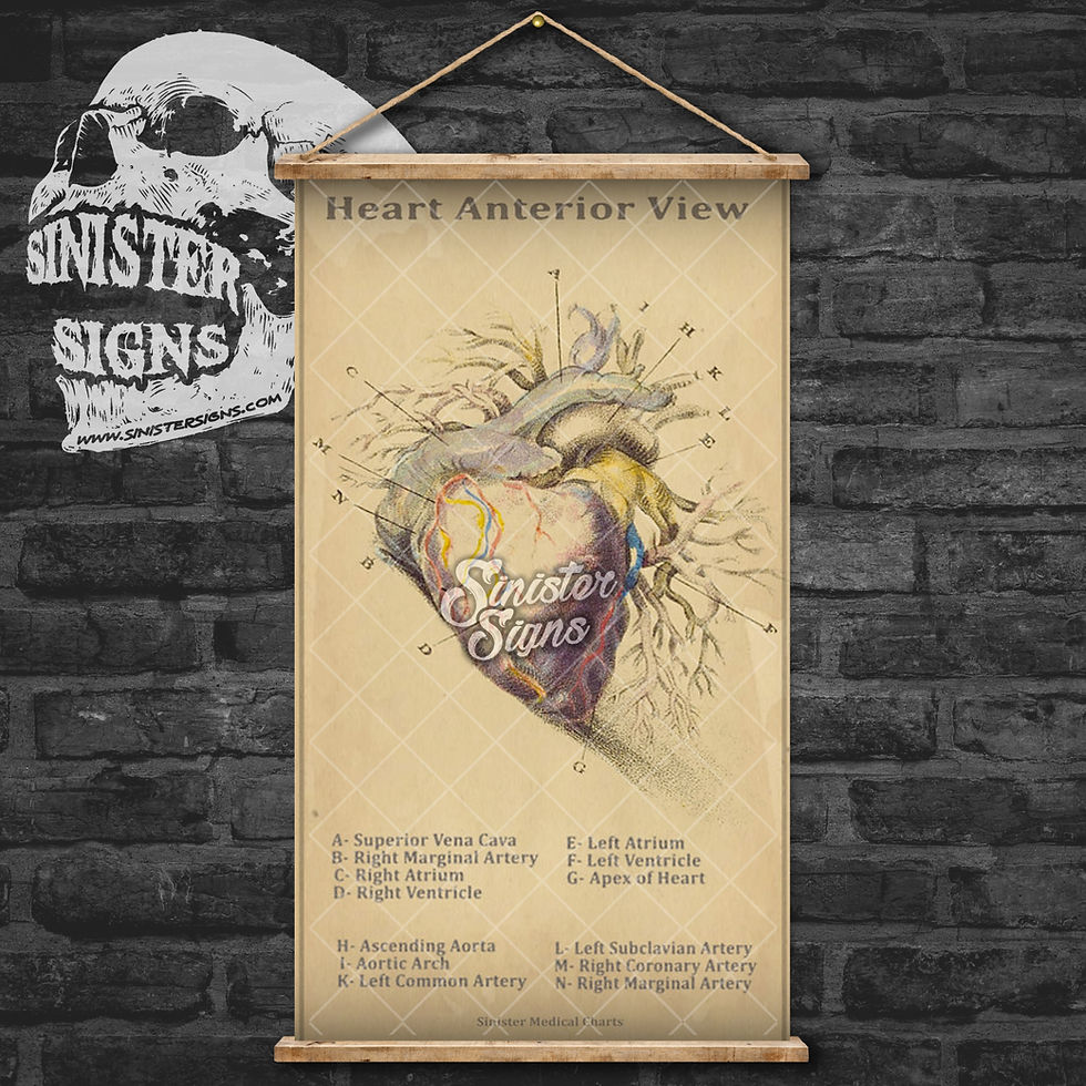 Our wall hangings are crafted from heavyweight scrim vinyl and measure 24" W x 42" H, making them the perfect statement piece for both your haunt or home. Each hanging features a wooden strip along the top and bottom, with twine at the top for easy display. Handmade with care, no two pieces are exactly alike, so slight variations may occur, adding to their unique charm. One of our most popular products, these wall hangings feature digitally restored vintage prints, new creations, and one-of-a-kind art pieces. We’re constantly adding fresh designs, so be sure to check back for new, eye-catching options that will elevate any space with a spooky or artistic flair!